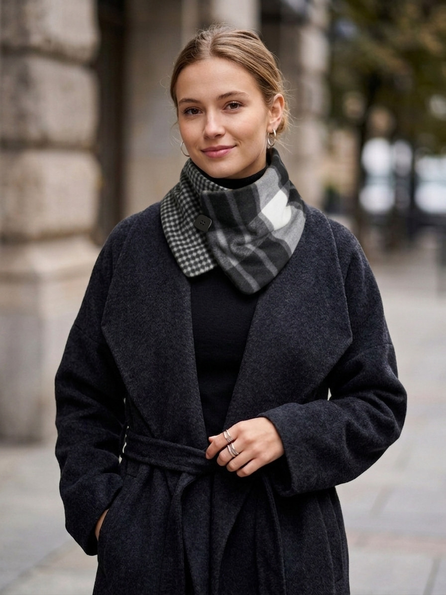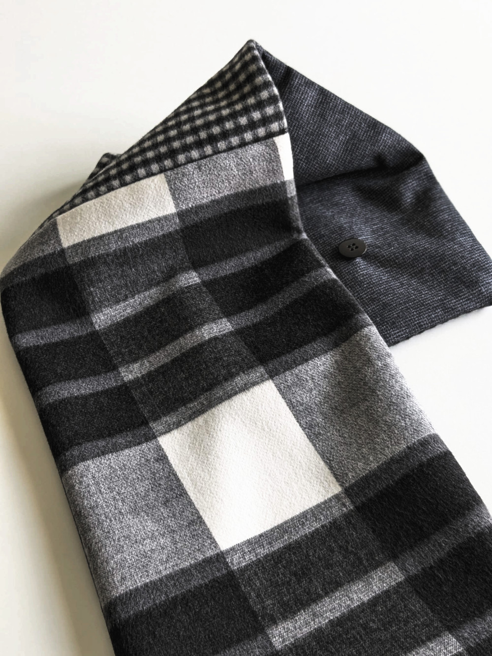 Cuello elaborado combinando telas suaves, densas y flexibles en tonos blancos y grises. El botón se ha seleccionado en especial para cada pieza de una colección de años. Forro interior combinado en las mismas tonalidades con botón de refuerzo.