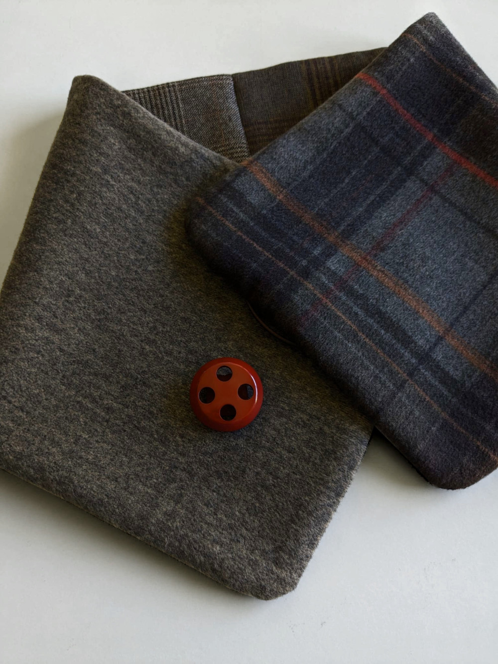 Cuello elaborado con telas suaves, densas y flexibles en tonos tostados y tierra. El botón se ha seleccionado en especial para cada pieza de una colección de años. Forro interior combinado en las mismas tonalidades con botón de refuerzo.