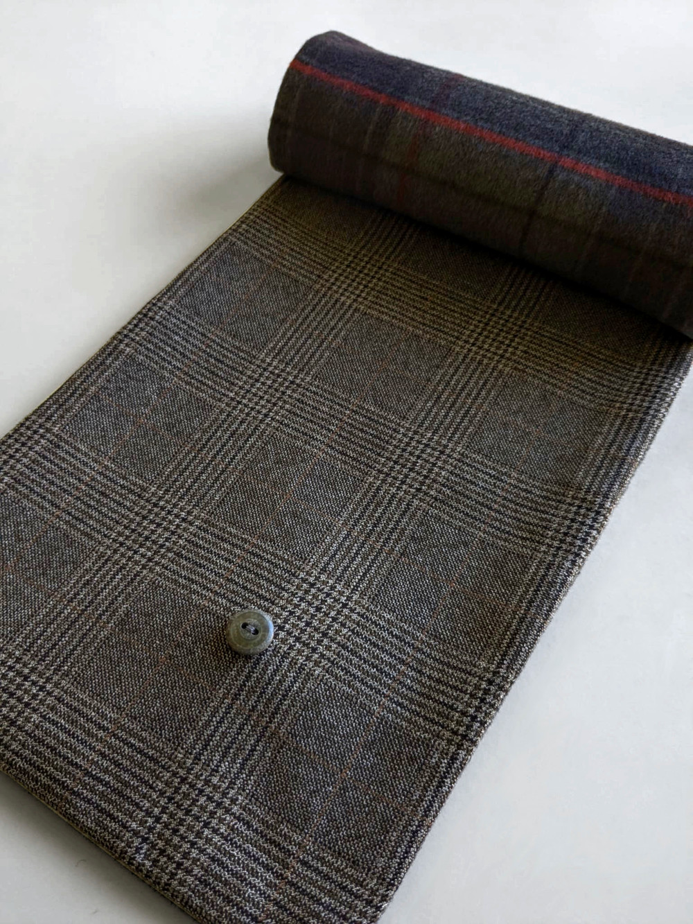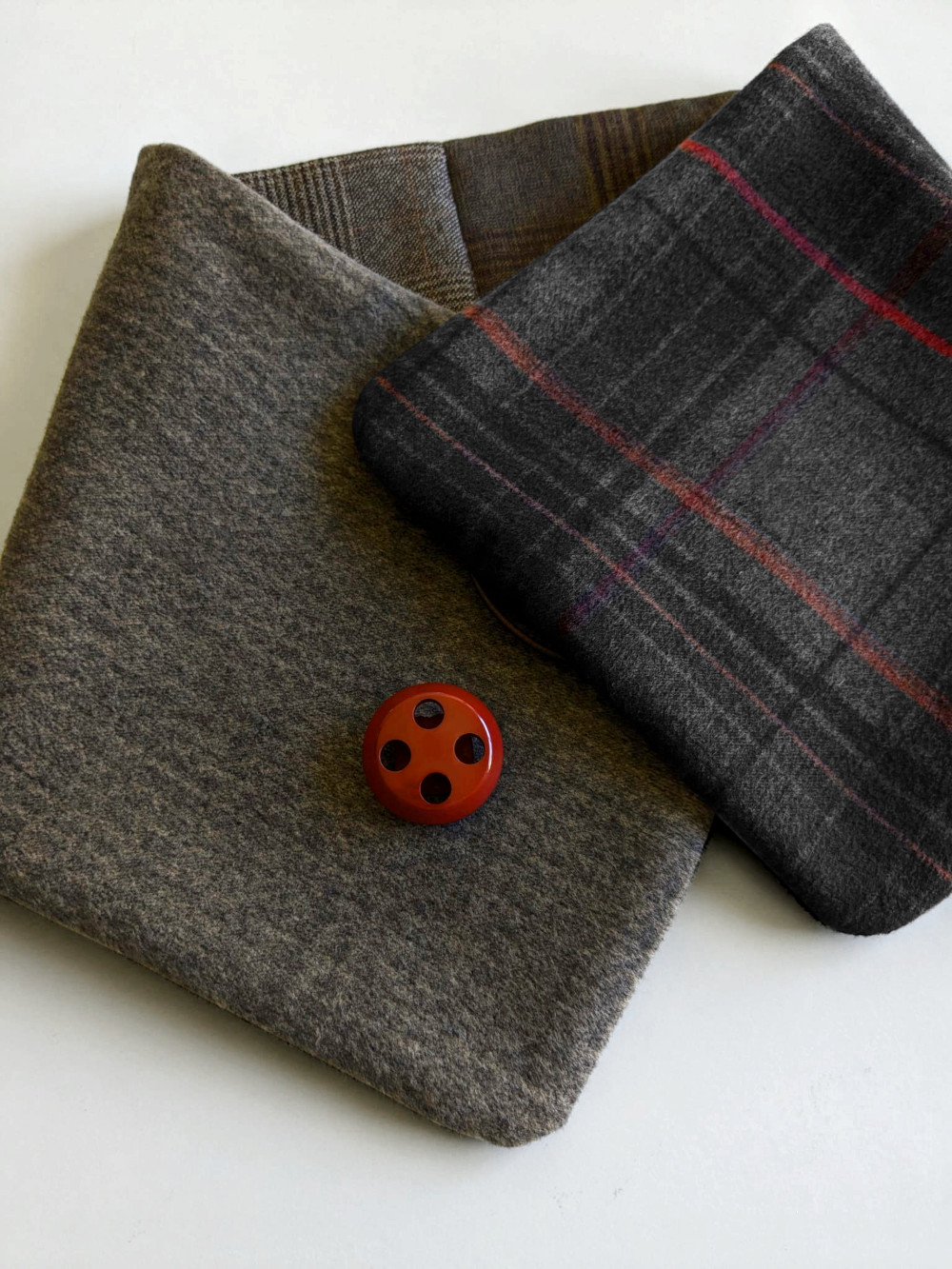 Cuello elaborado con telas suaves, densas y flexibles en tonos tostados y tierra. El botón se ha seleccionado en especial para cada pieza de una colección de años. Forro interior combinado en las mismas tonalidades con botón de refuerzo.
