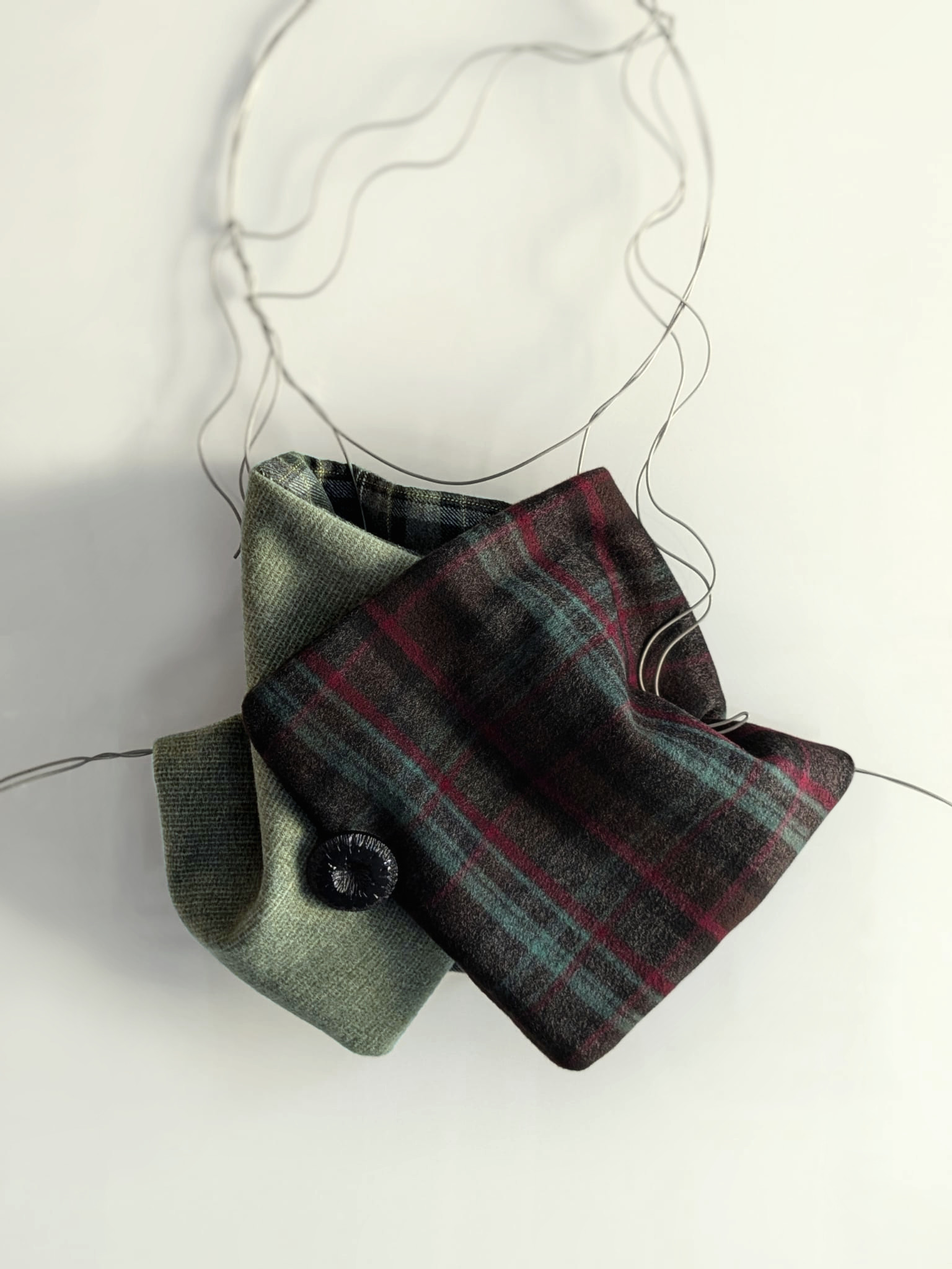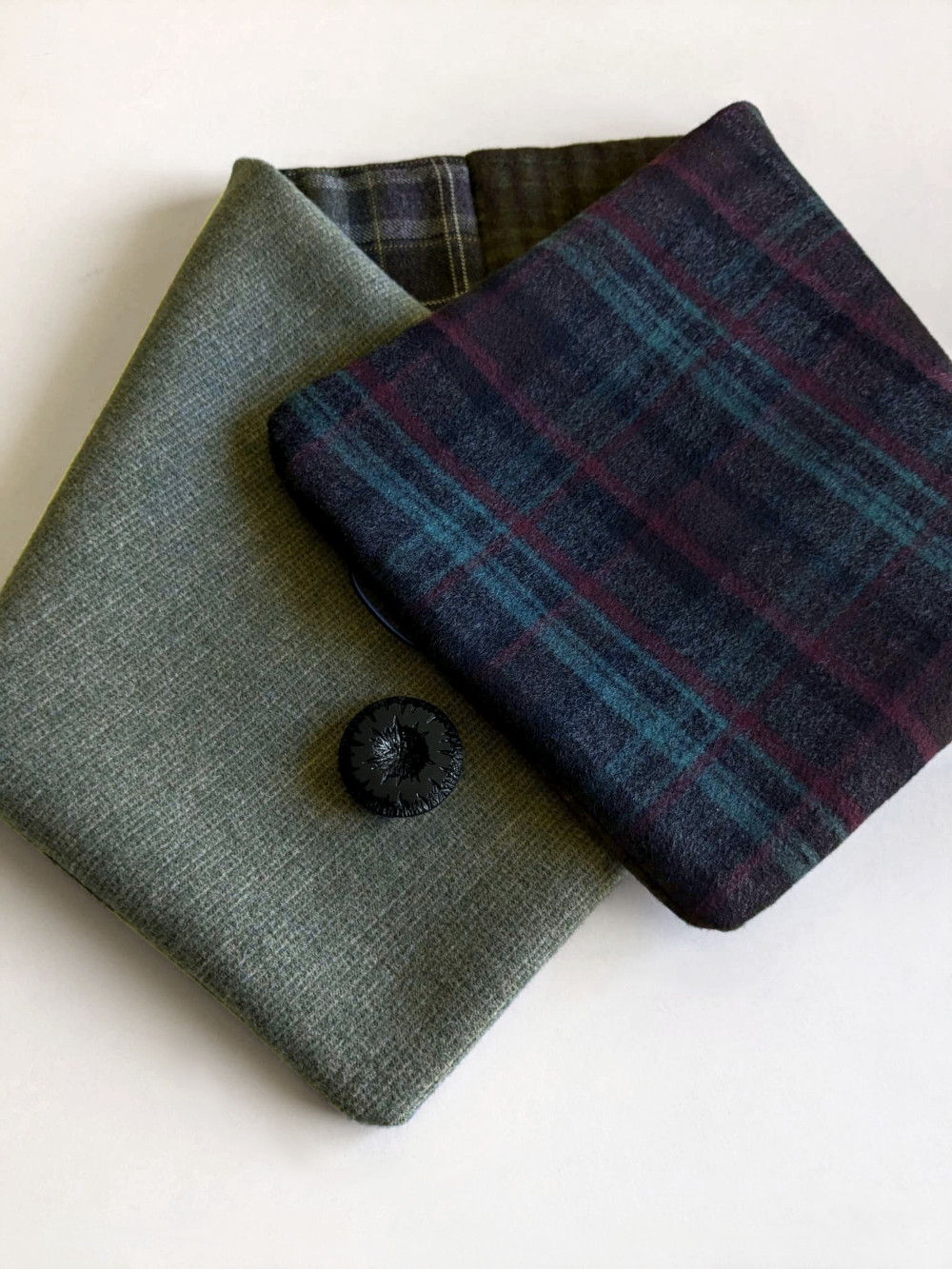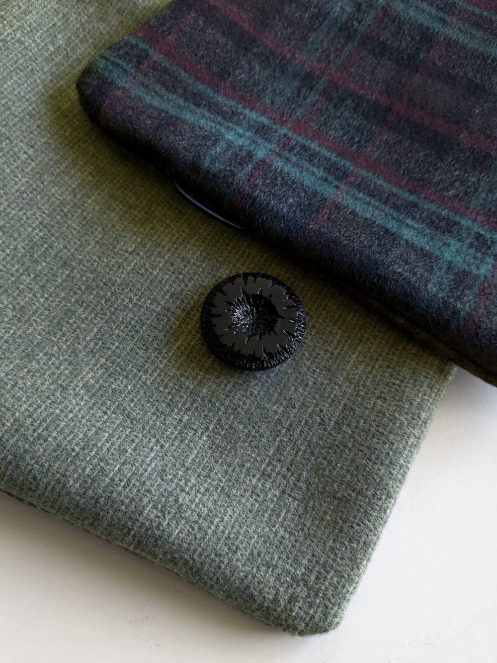 Cuello elaborado con telas suaves, densas y flexibles en tonos negros, tostados y verdes. El botón se ha seleccionado en especial para cada pieza de una colección de años. Forro interior combinado en las mismas tonalidades con botón de refuerzo.