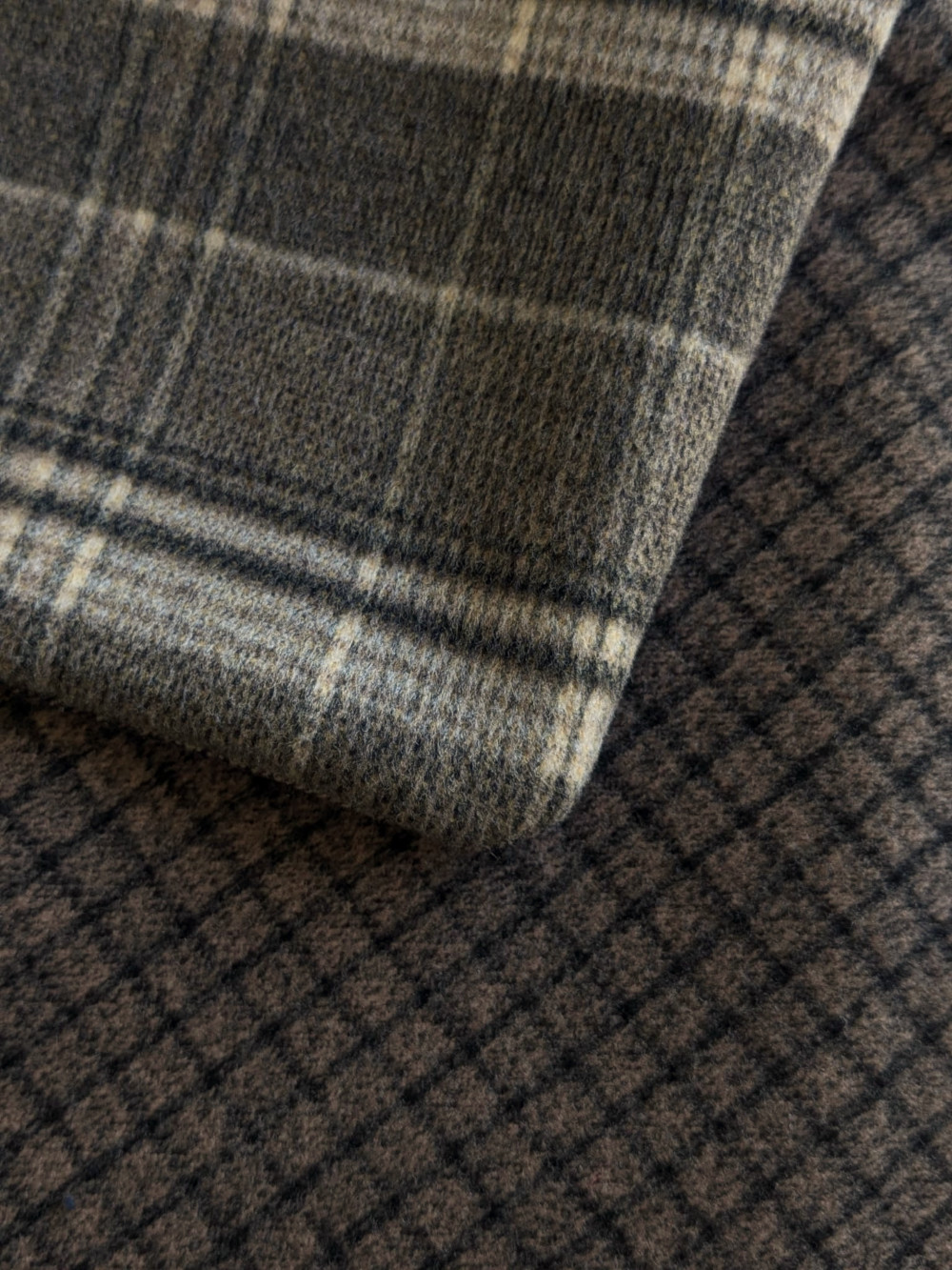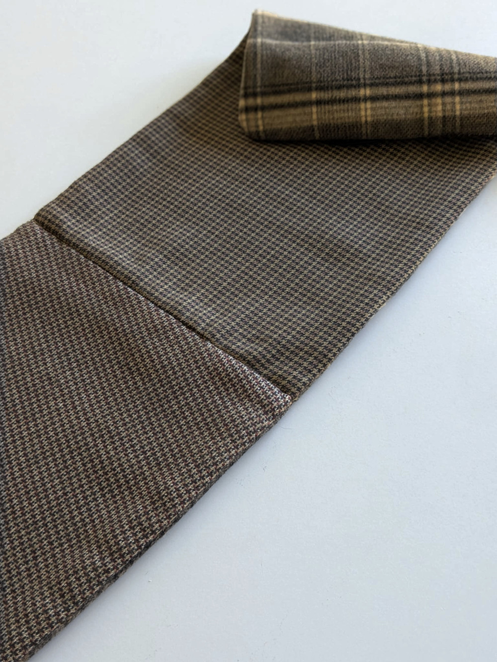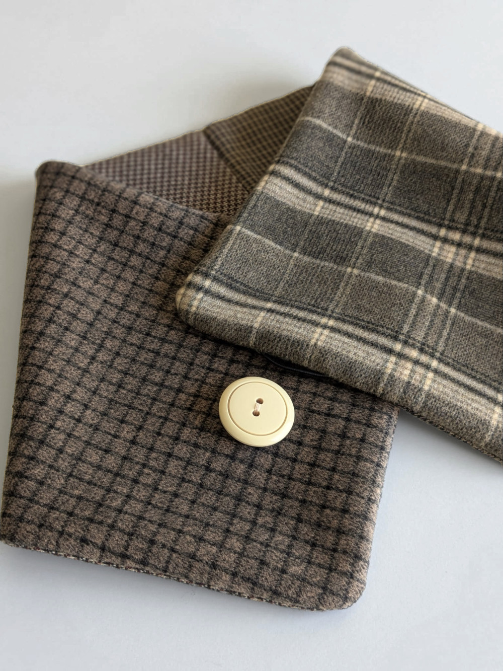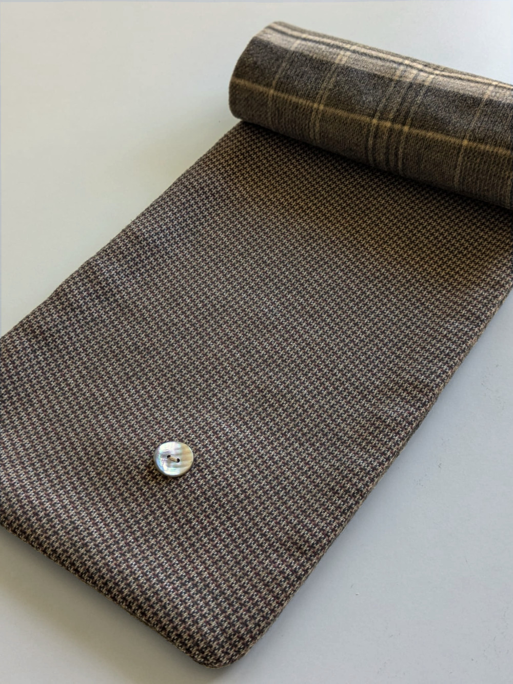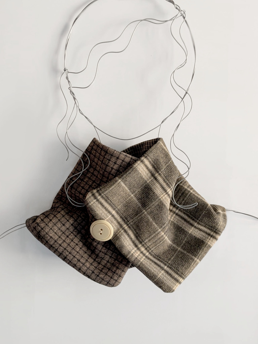 Cuello elaborado combinando telas suaves, densas y flexibles en tonos tierra. Forro interior combinado en las mismas tonalidades. El botón se ha seleccionado específicamente para cada pieza de una colección de años.
